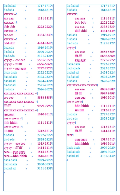 I am doing a telephone/business directory. The data is imported from an Excel spreadsheet. Some businesses/organizations have multiple entries. I would like to be able to group them under a common heading. Please see attached files. A semi-automatic script, say, highlight a selection manually, then execute the script working only on this selection, would do the trick. A fully automatic one processing the whole document would be fantastic!