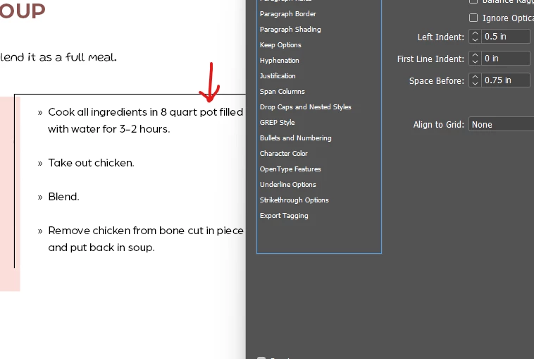 Is there a way to get a space (indicated with red arrow) above the first text border on top