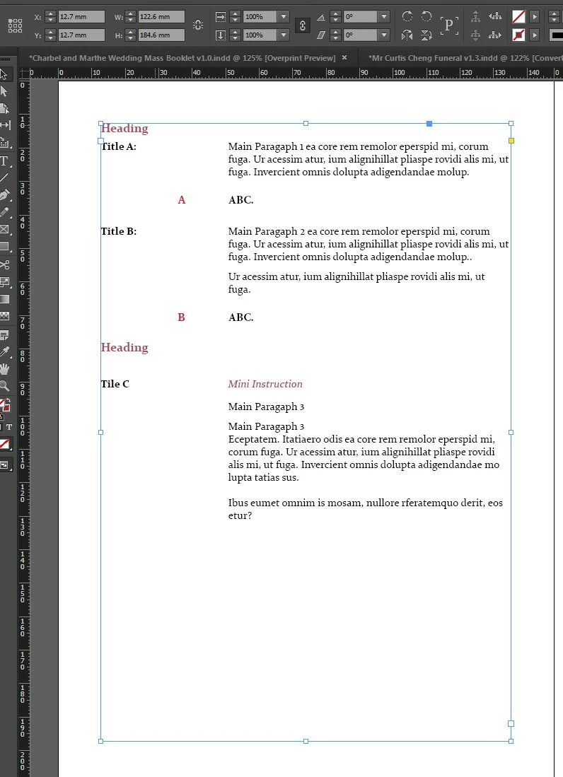 Trying to set up my text box where I can have my main Headers on the left of the text frame