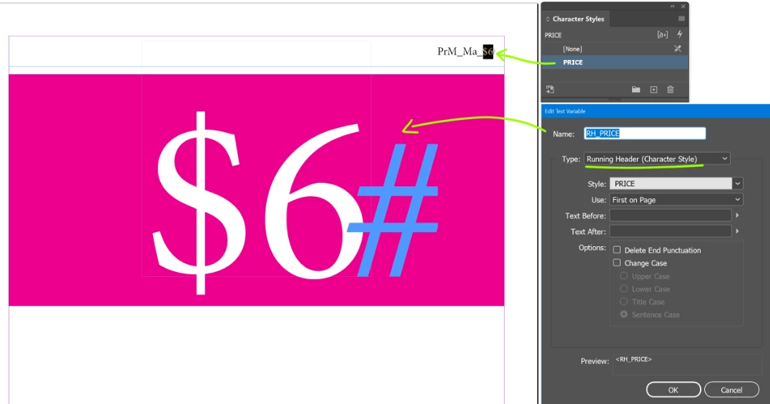 Running header doesn't work, and Place & Link doesn't work as it's not live.