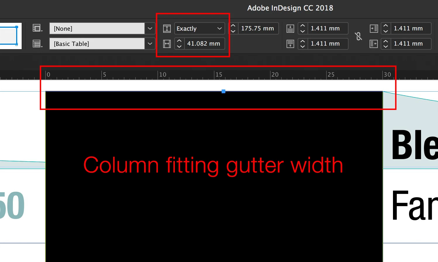 I have an Portrait A4 document with 15mm borders, two columns with a 30mm gutter.
