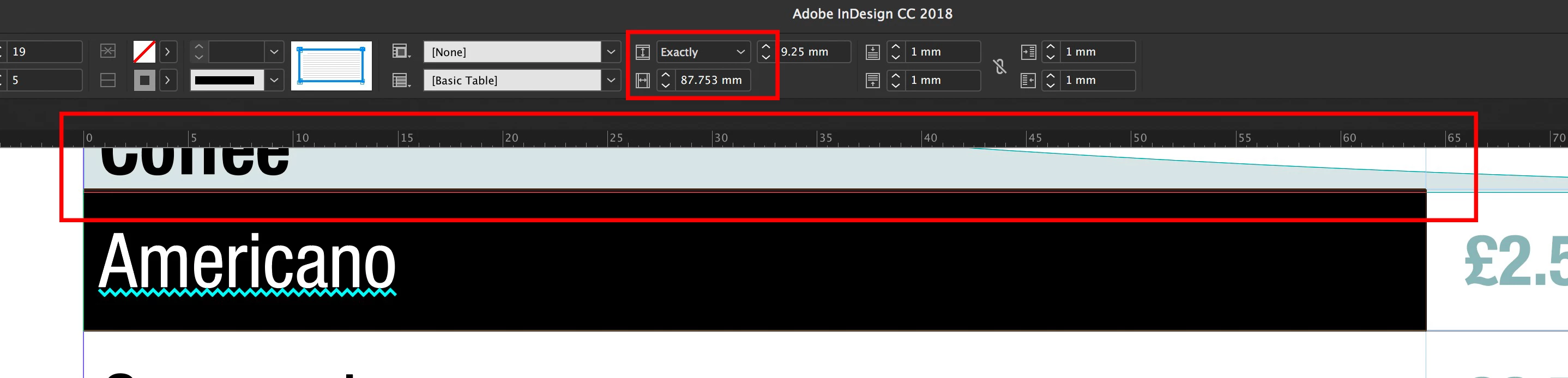 If I reduce the size on the toolbar the column reduces - but not matching the ruler size