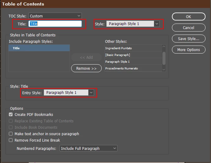 I am trying to create a table of content for my book, but something is not going as expected. When I select the desired style, which should be black text, and create the Table, the style of the character is not black but white, which is the style of the title I am choosing.