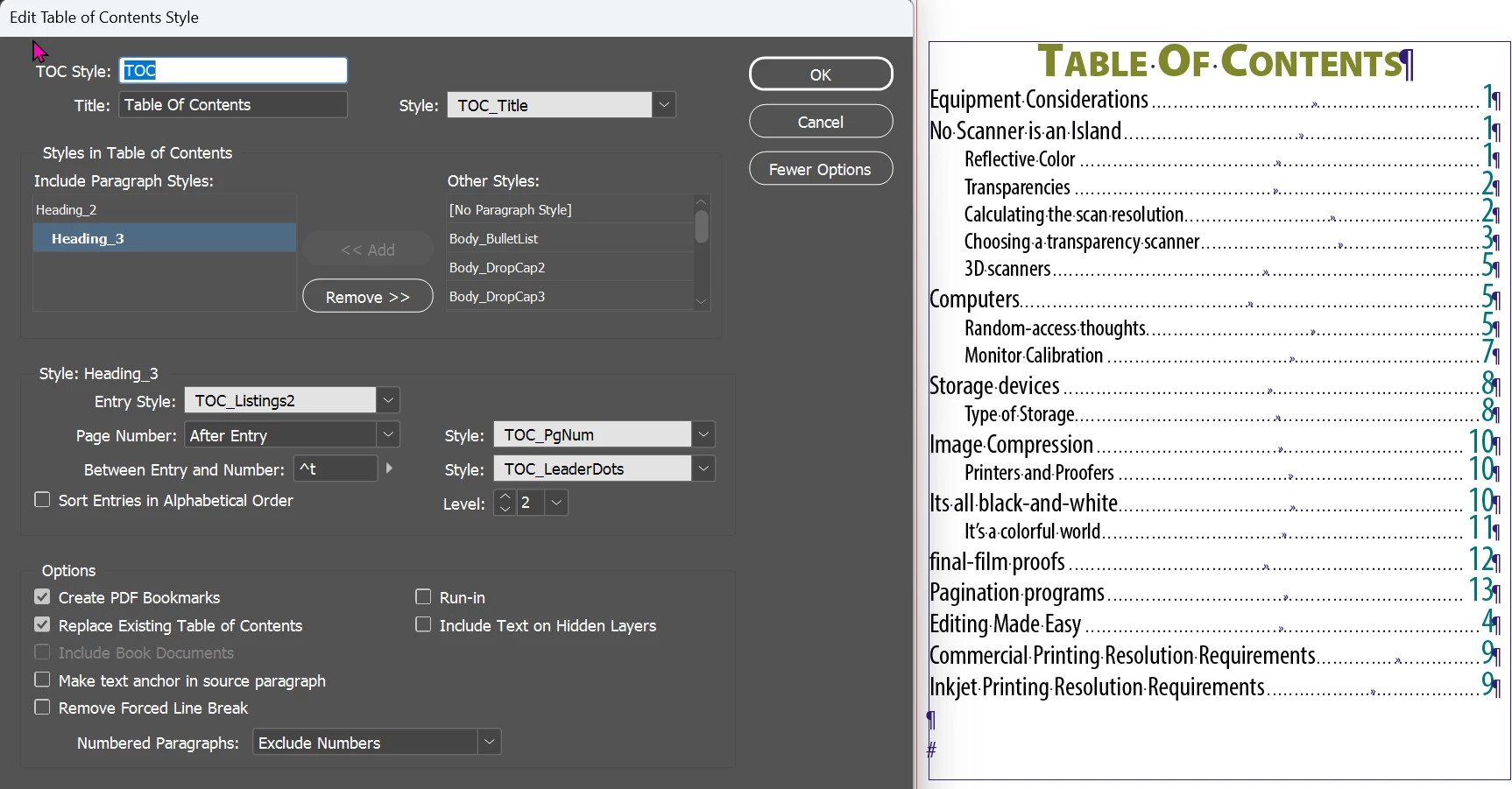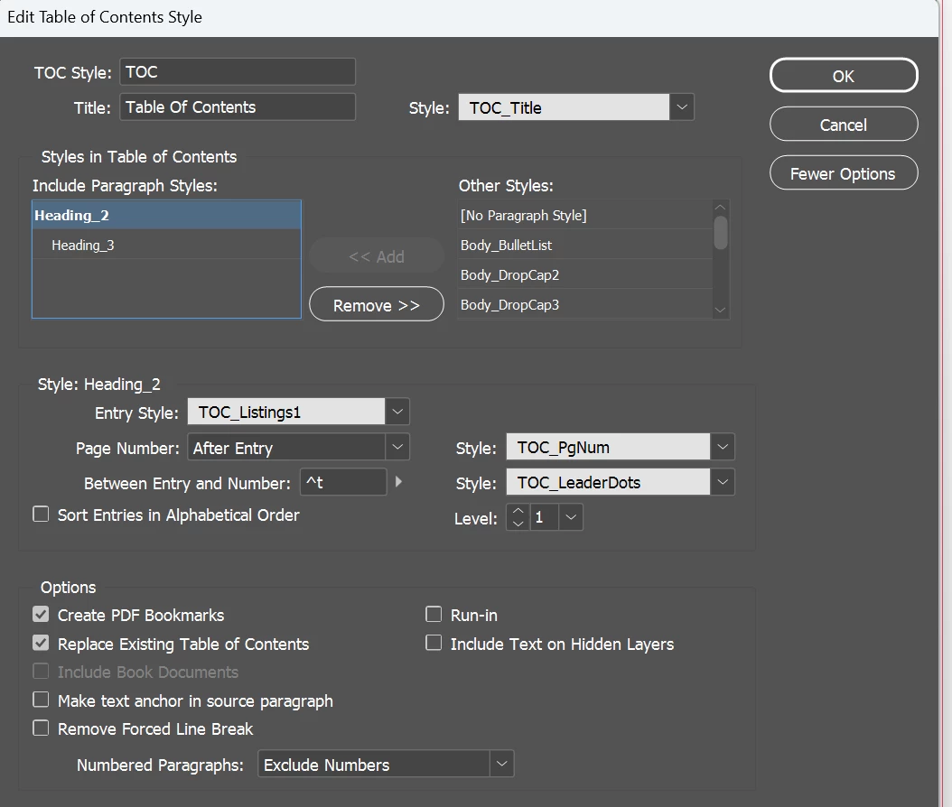 I am fairly new to InDesign and am trying to create a Table of Contents.