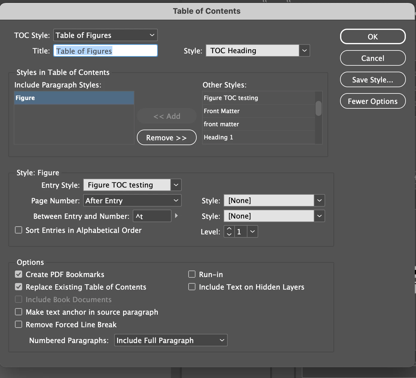 I have a table of figures and two numbers are out of order. Figure 4 and 5 are out of order (I've included an image). How do I get the table of figures to be automatically in numerical order? I've created the Table of Figures using the Layout>Table of Contents option. I've included an image of my settings.