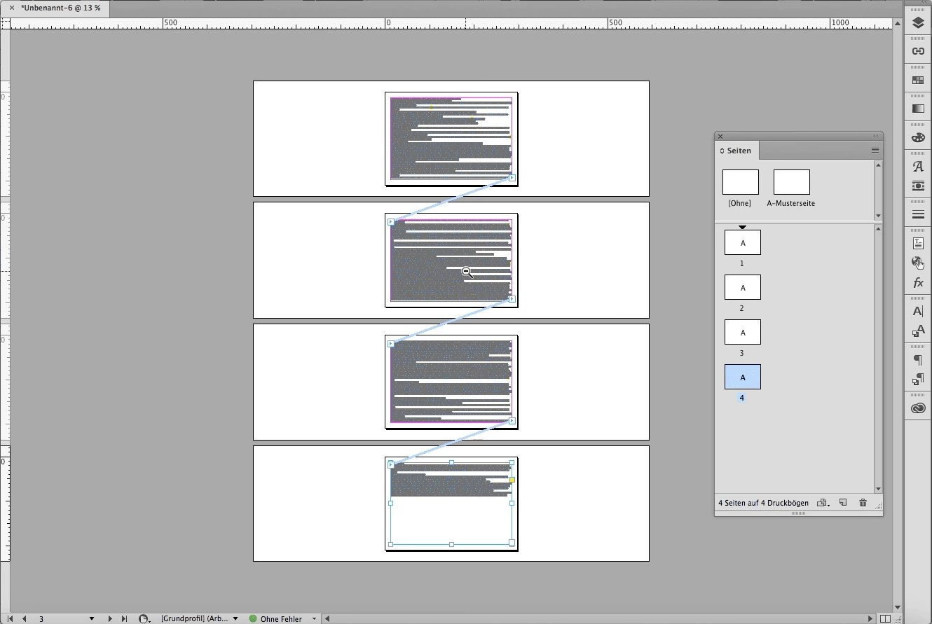 1. Click the red plus sign that constitutes the out-port of the text frame one time to load overflowing text to the cursor.