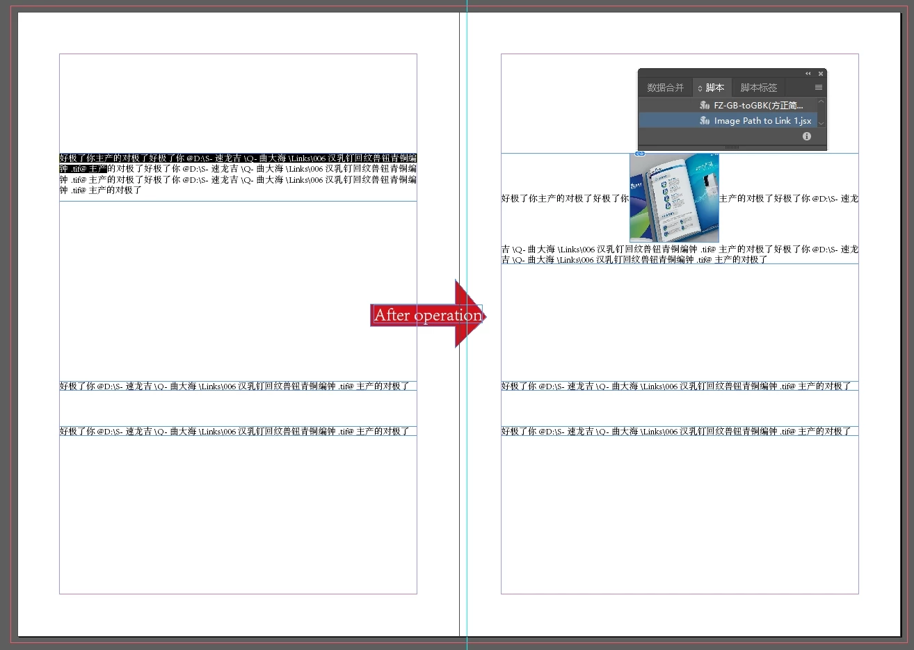 The script provided by you can insert the path in the text containing @d:\pic\a.jpg@ directly into the image.