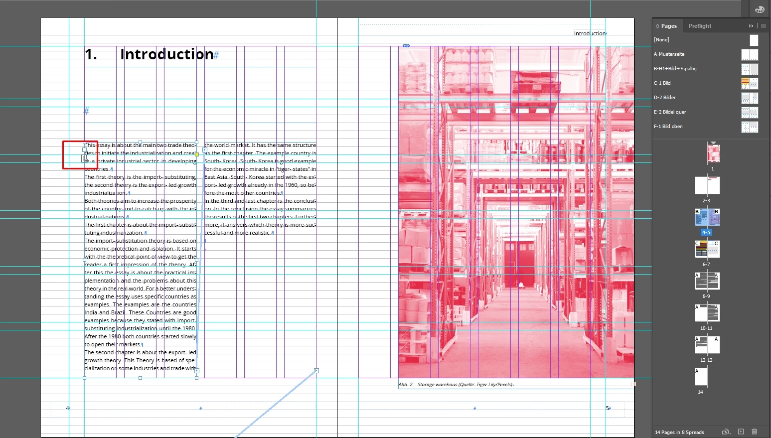 I imported text and created sample pages.