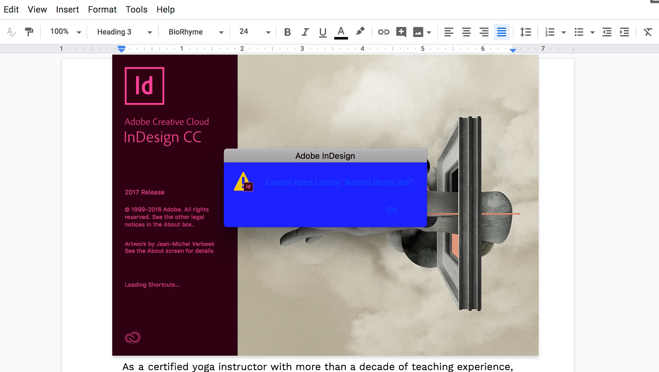 Unable to open InDesign 2017 on MAC. Error: Cannot open Library "ButtonLibrary.indl".