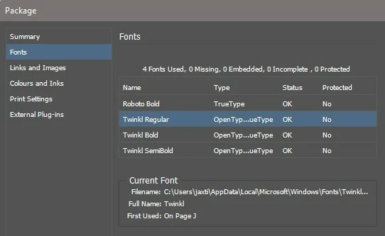 If I run a find change to replace all characters with Twinkl font, then it will recognise it, but the paragraph styles all show as modified. Also, this is not a good solution if multiple different fonts are used.