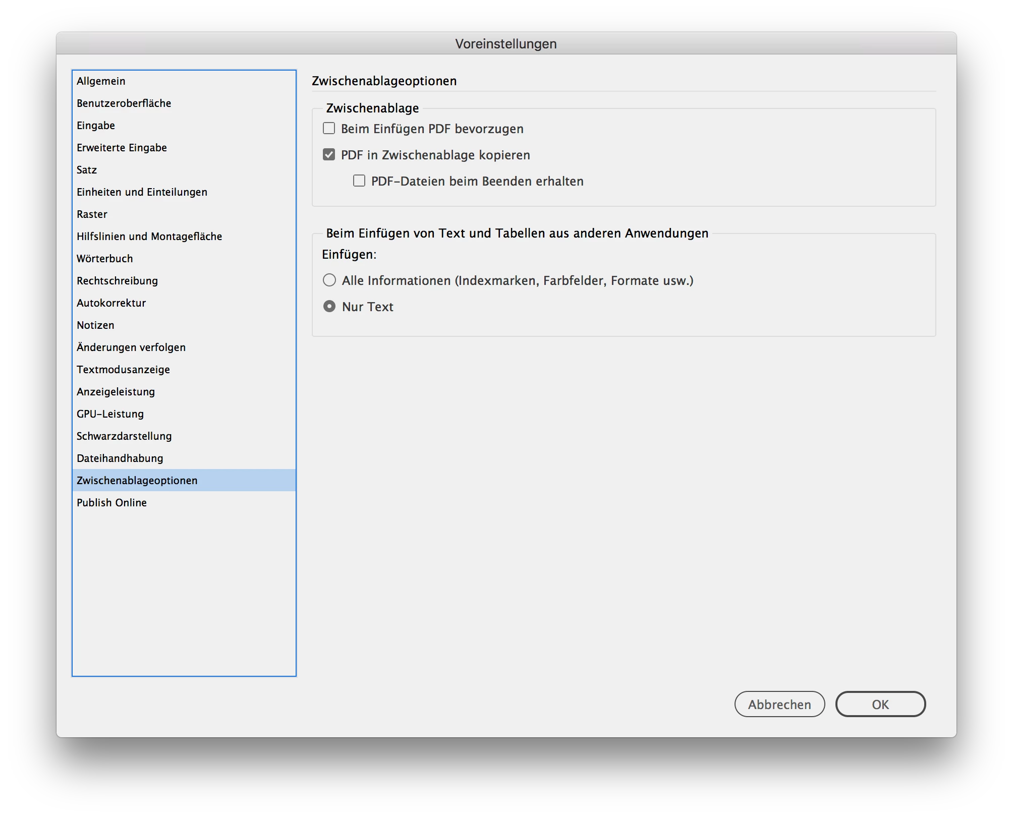 unformatiert einfügen unter Indd CC 2018