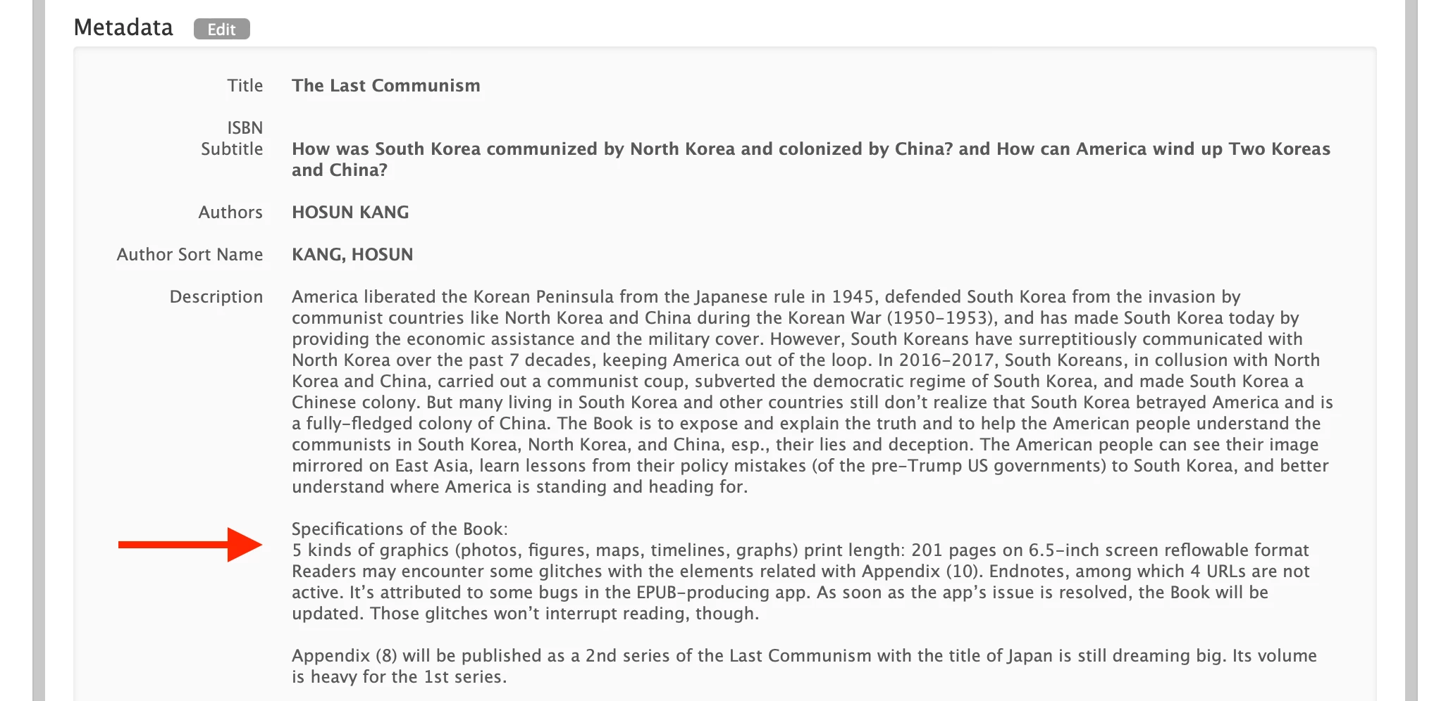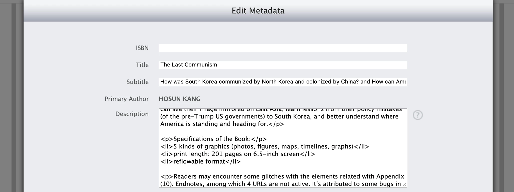 In uploading EPUB on Apple Books, I should fill in Book Description.