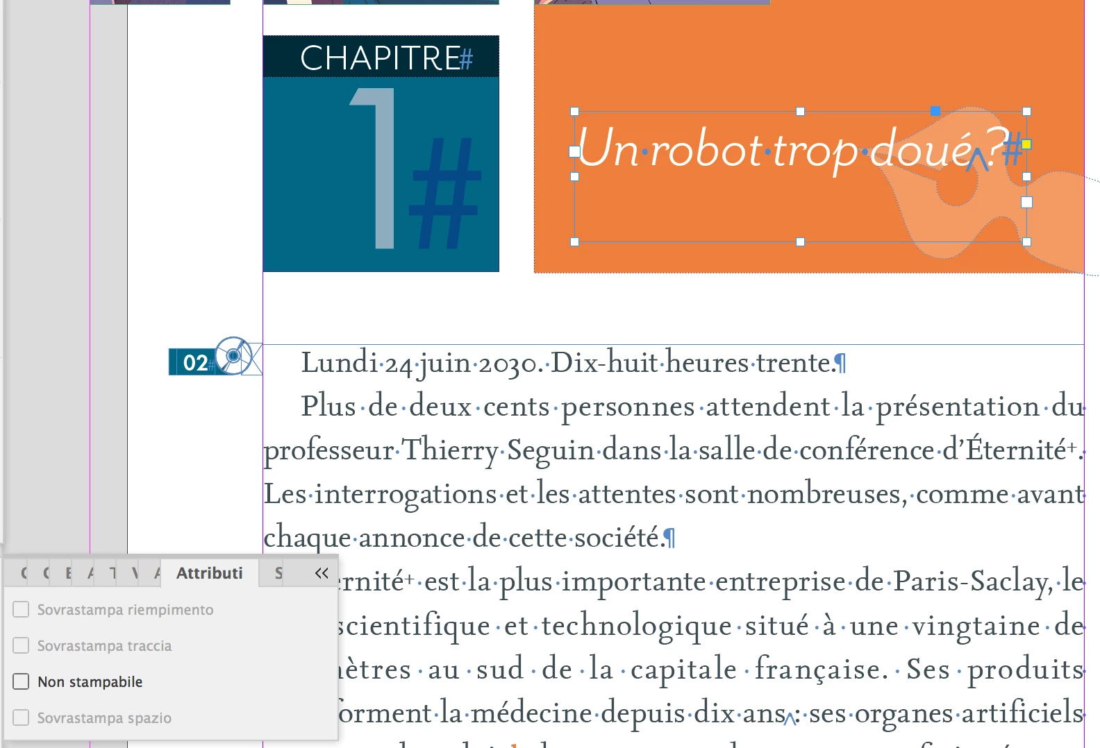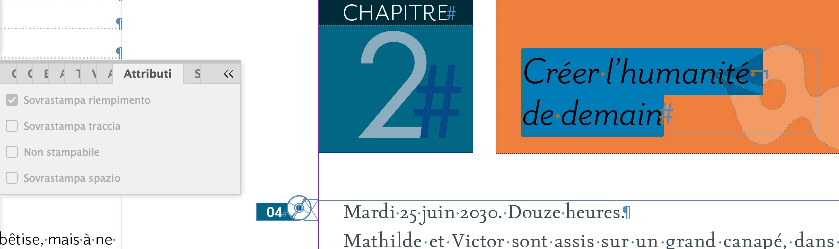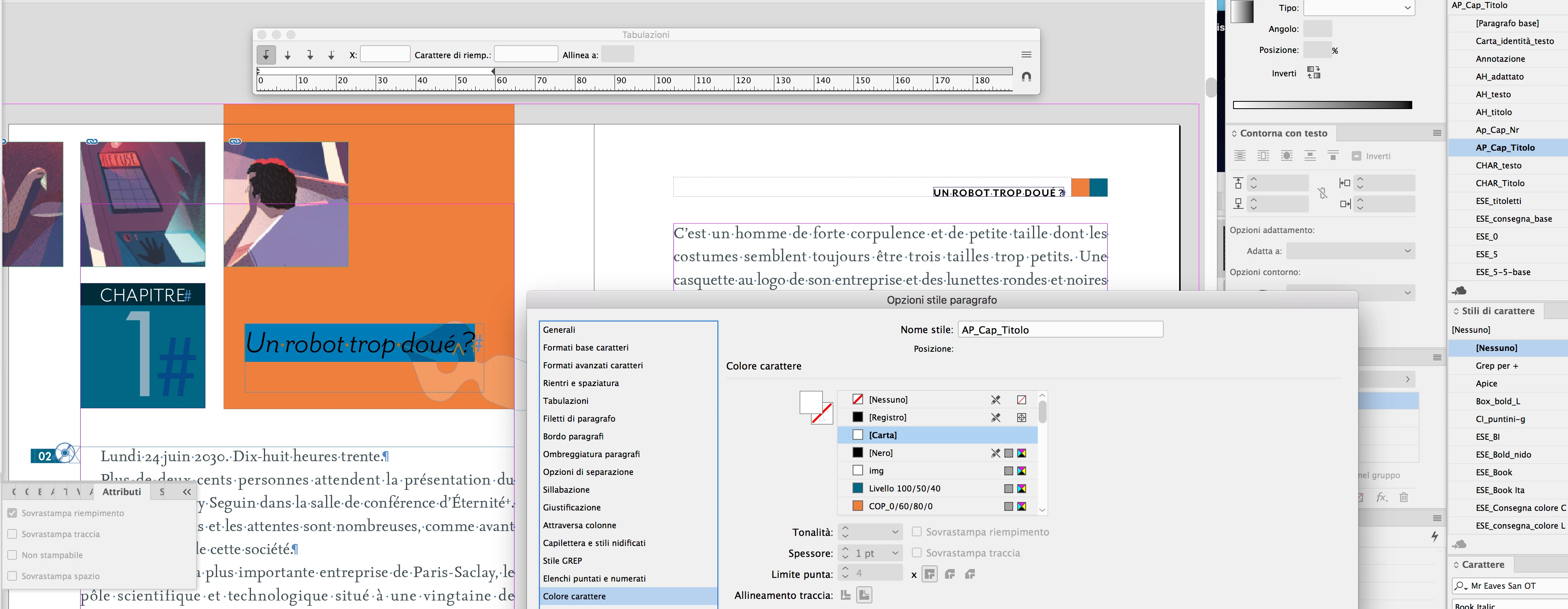 So, here is my (sad) story: a book printed with no titles at all, a second book printed with random words of the titles (white titles on an orange background). The paragraph style sheet has correct overprint settings, the text box in the master page has correct overprint settings. If I select the text box in the regular page the overprint settings are correct, but if I highlight the text, in the Attributes panel 'overprint filling' is checked in pale gray so that I can't change the attributes. If I select and move the box forth and back, the overprint check disappear. Any suggestions, except an exorcism? I have to explain to a customer why his production of graded readings, this year, would be taken to waste without losing his confidence.