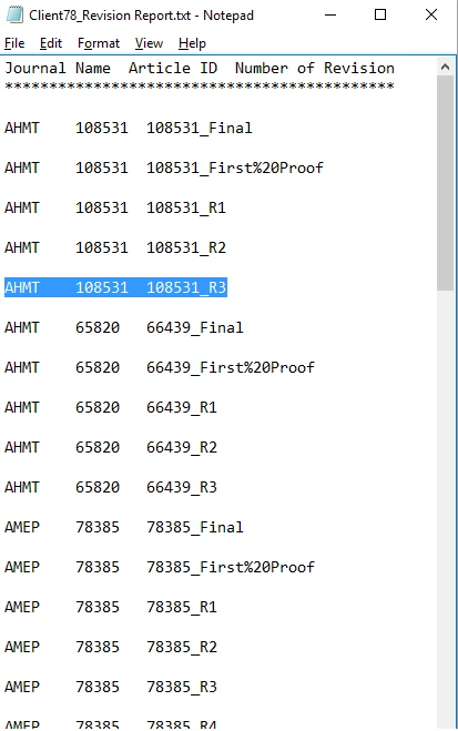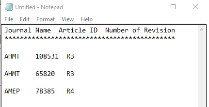Report.writeln("Journal Name\tArticle ID\tNumber of Revision\r*********************************\r\r");