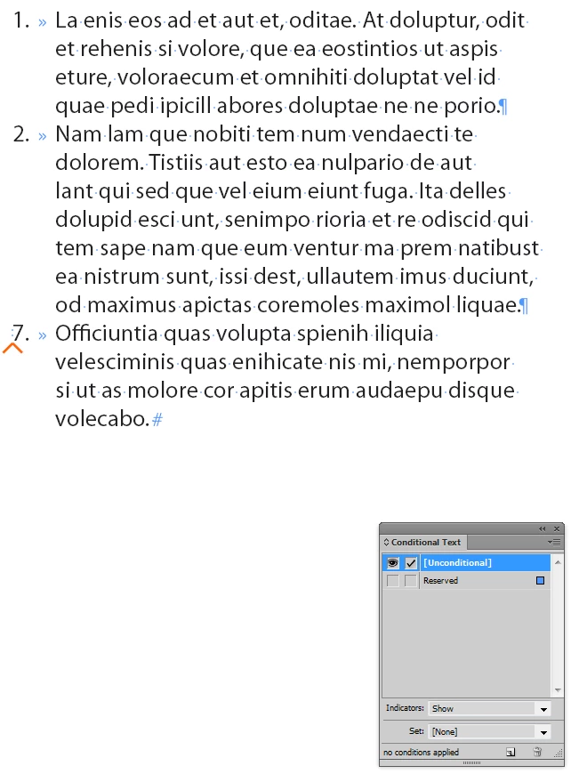 3. Create New Condition, apply to 'reserved’ paragraphs: