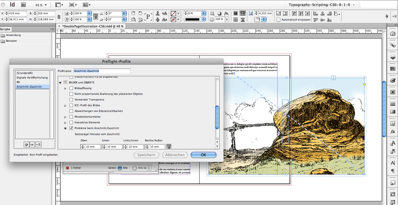 2. Illustration on odd page only. Error in preflight.