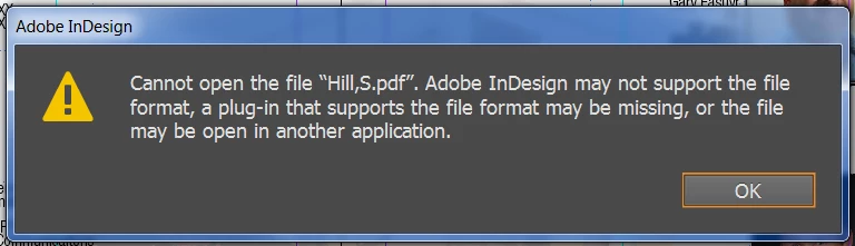 This is also the same prompt that pops up when I want to try to export my Indesign file to a PDF version.