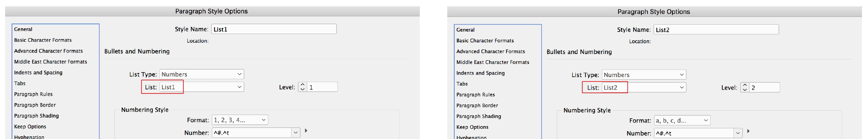 Par. Style for numbers List 2 of a, b, c, Level Two.