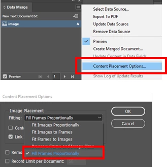 The function "fill frame proportionally" does not work when I am using Data Merge to place images into frames. However, the function works excellently when I am placing images under normal circumstances. Does anyone have a solution?