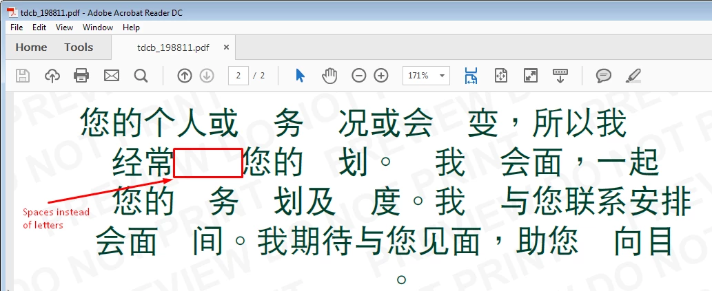 Even it looks odd in Acrobat Reader DC (spaces) - Version: 2017.009.20044