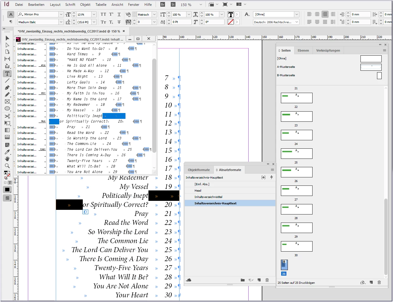 Yes, I also think that there is no automatic solution with the TOC function in InDesign. But with a few changes afterwards, the desired result is possible (and reproducible).