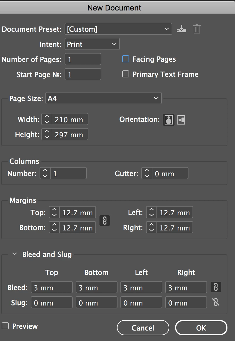 Is trim size the overall size of the document and how can I set up the image area and safe area? Also my Indesign always rounds up the mm, I'm not sure where to change this setting?