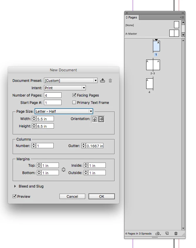 This trips me up every time. I am doing a booklet which is essentially an 8.5 x 11 sheet of paper folded. Each page will have 4 pages (side 1 - Page 1-2, opposite side - Page 3-4) etc. When I look at the screen I should see a landscape 8.5 x 11 artboard... correct?