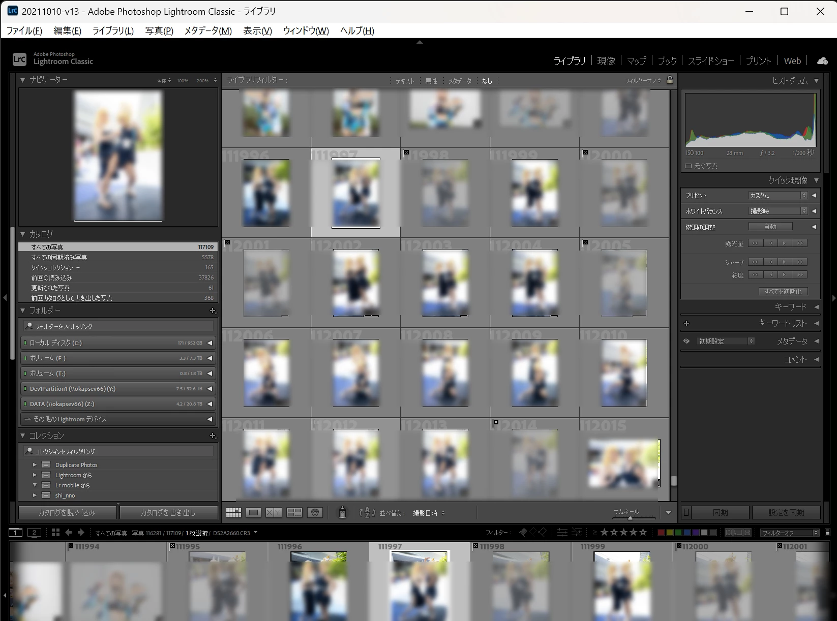 「カタログ」-「すべての写真」には存在しています(被写体のプライバシーの為にぼかしをかけてあります。またサムネイルには「!」がないことに注目)