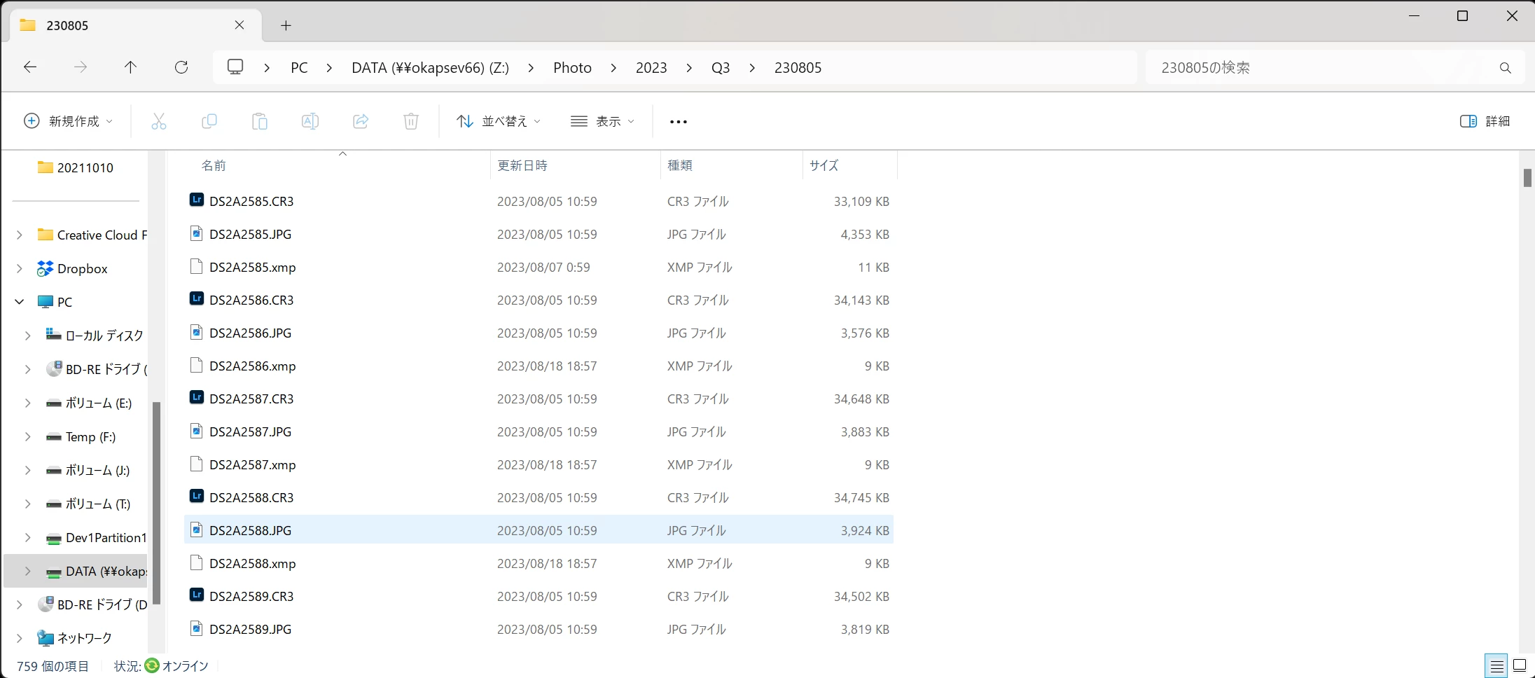 この画像はNASドライブ(24時間運用、ドライブレター固定化)ですが、