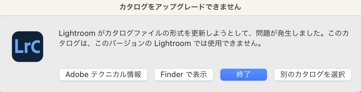 macOS Venturaで利用時、以前のバージョンで作成したカタログのアップグレードが出来ない。または開けない。