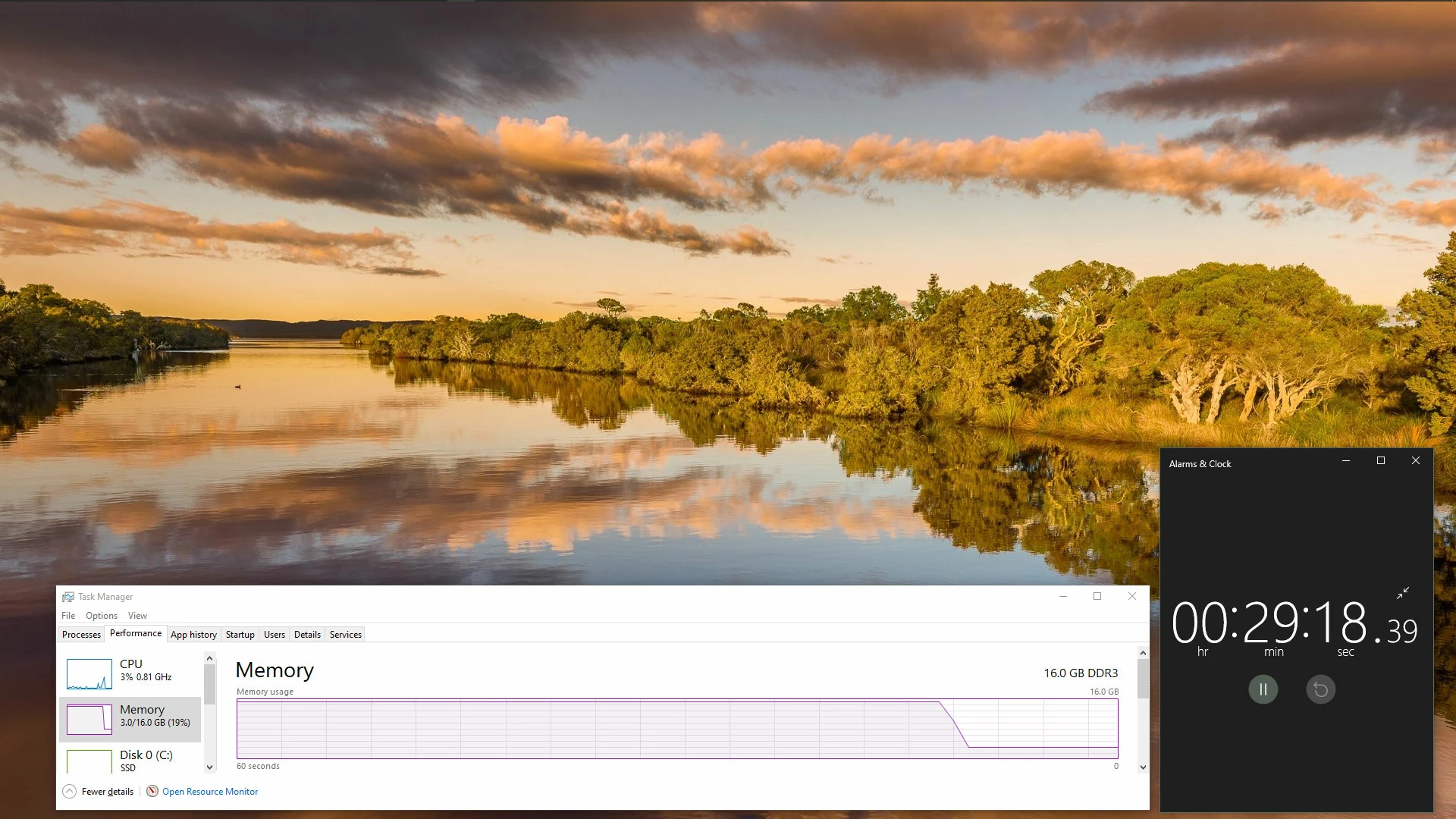 I then closed LrC. The release of its massive memory grab can be seen in this screen shot on Windows Task Manager's memory performance tab.