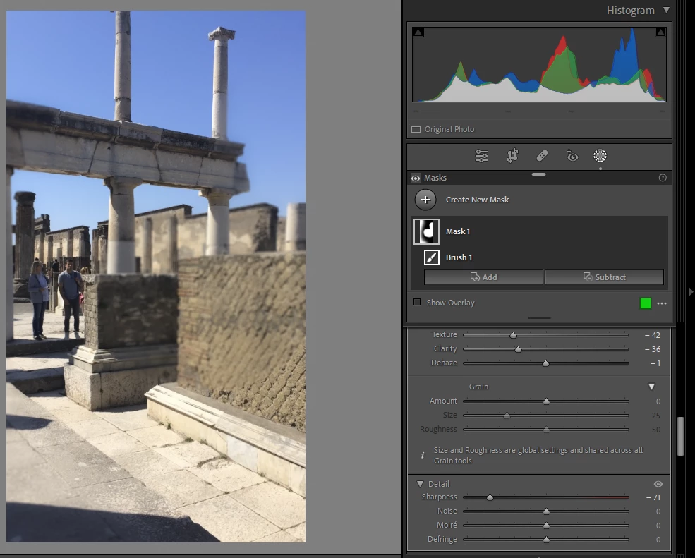 Alternatively you can locally mask (with varied density across the image), a local adjustment whuch applies a blurring effect. This may include for example Clarity and Texture (as negative values) found in the Effect subsection of the local adjustments panel, or reducing the Sharpness parameter found in the Detail subsection of the same panel.