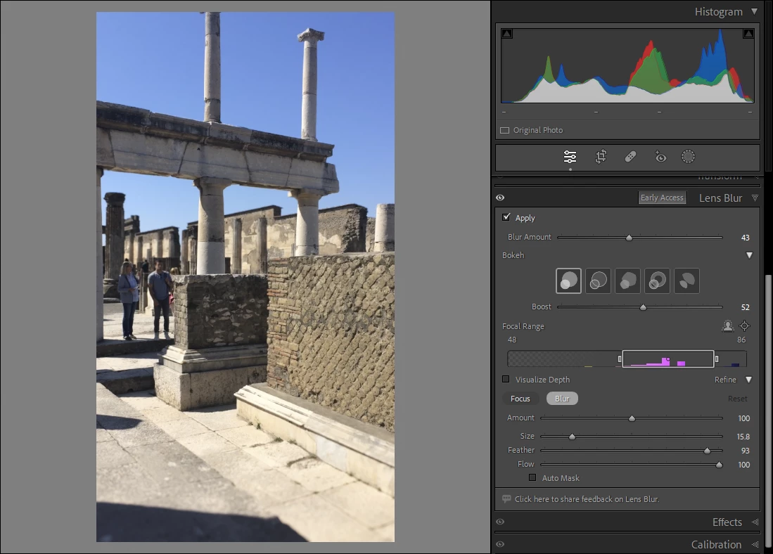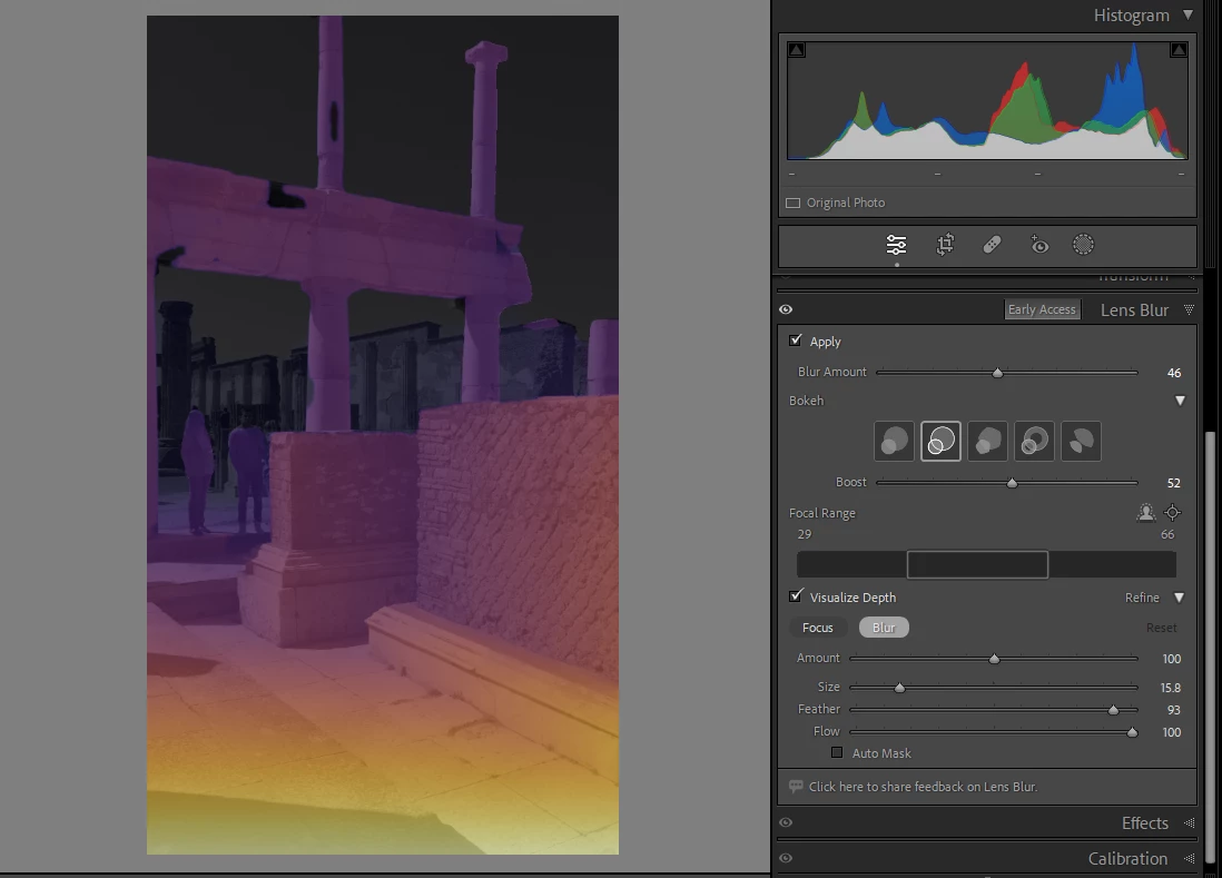 and then the lens blur can be manipulated as to where its plane of simulated focus should sit within this virtual depth range