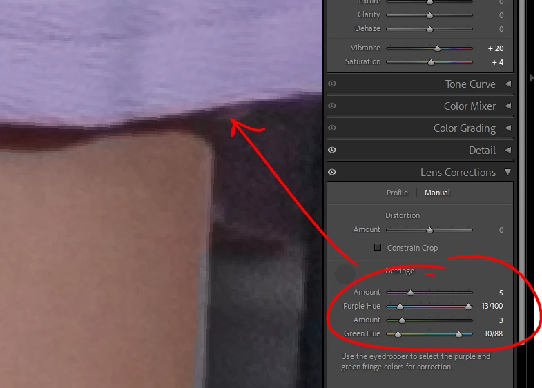 I am trying to correct chromatic abboration on an image with a lot of purple orange and pink.