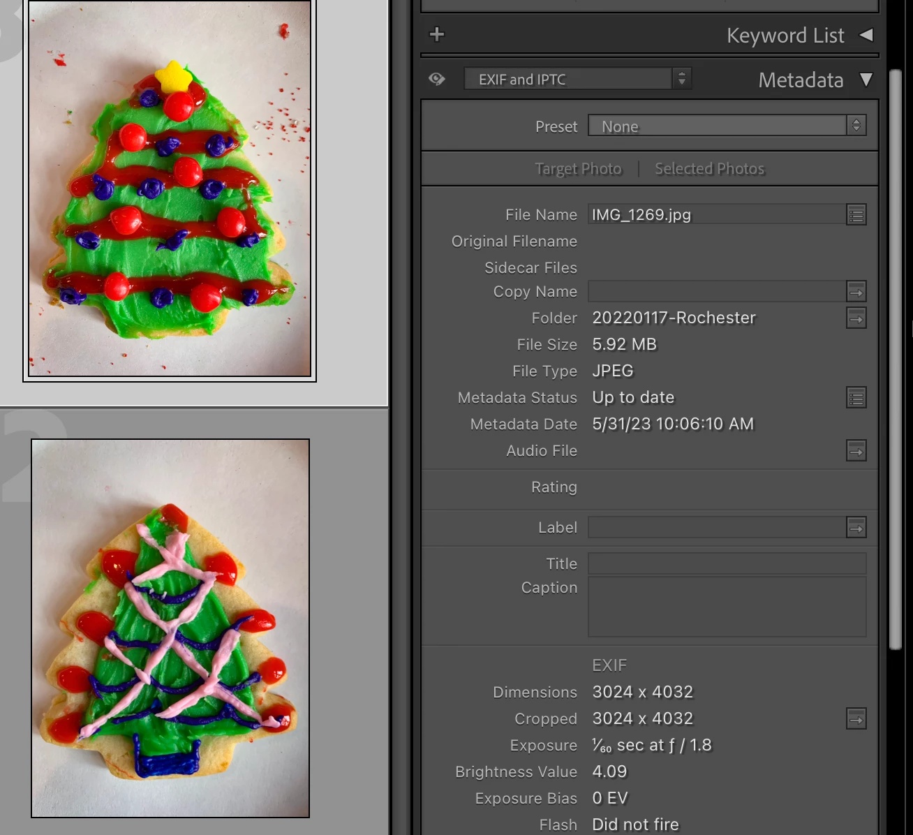 The Buttons 'Target Photo' and 'Selected Photos' are greyed out (see pict). Lightroom Classic v. 12.3, on MacBook Air M2 using MacOS Ventura 13.4. I am using two screens - the standard lightroom window on my external screen, selected image on MacBook Air screen. The images (25,000) are on an external disk. All folders and images are set with read/write permission for anyone.