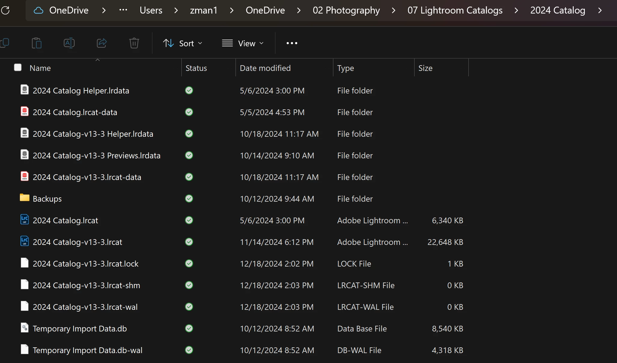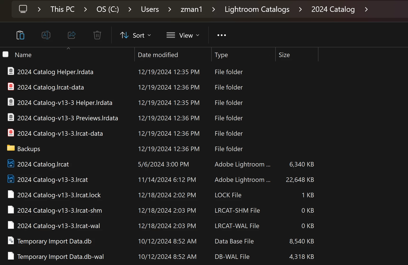 Also, in that screenshot on December 19. I see a folder named Backups. Are you keeping both your  working catalogs and your catalog backups on C drive? Bad.