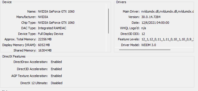 Could be an issue with 6 GB VRAM as opposed to 8 GB or 16 GB VRAM "for full GPU Acceleration"as stated in: