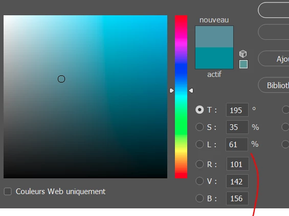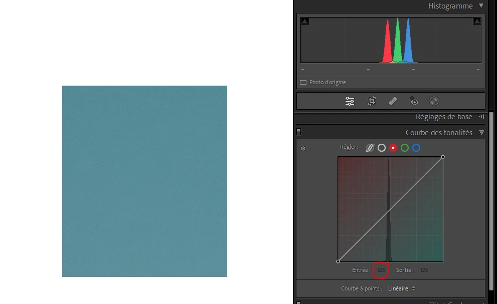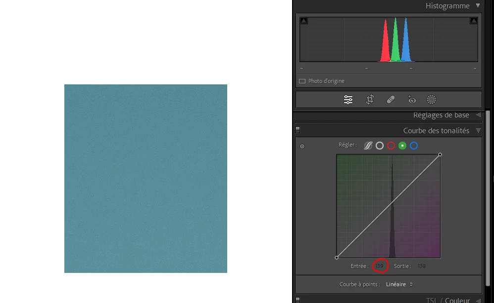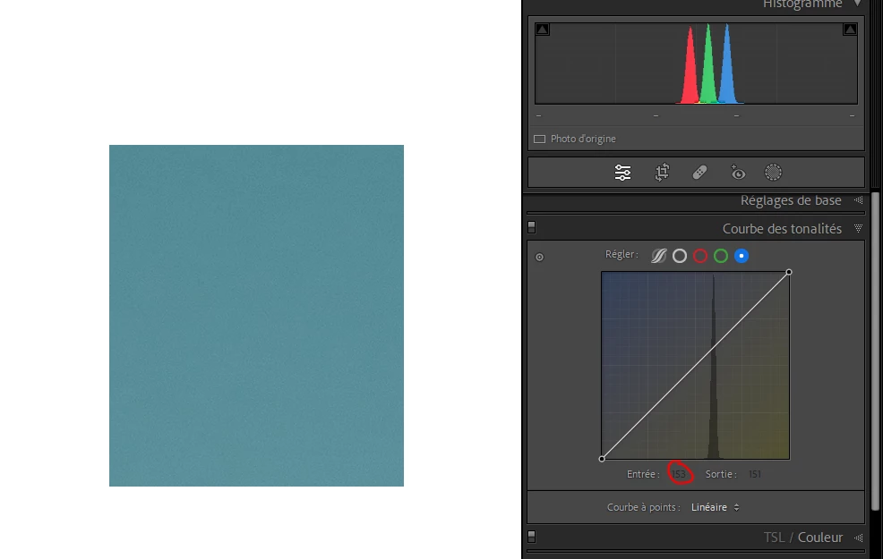 For example, for that specific color in Lightroom, the value of Red is 125, the value of Green is 139 and the value of Blue is 153.
