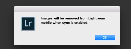 Then it proceeds to do this tutorial procedure where a cursor moves over the Lightroom symbol and tells me how to start syncing again. This is EXCEEDINGLY annoying!
