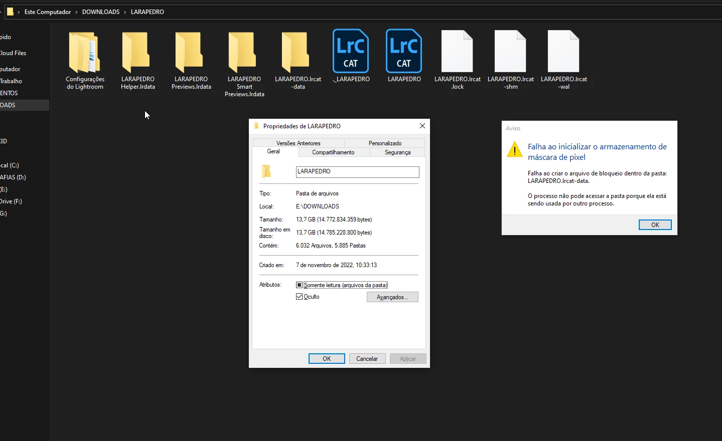 Erro ao acessar Catalogo do Lightroom / Error accessing Lightroom Catalog