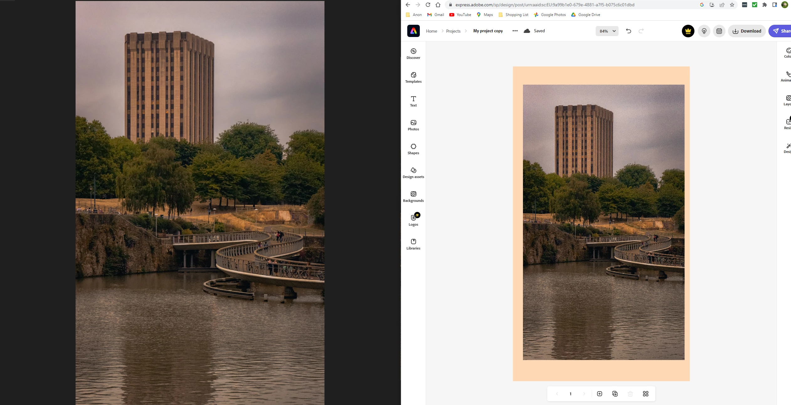 I thought maybe it was a preview image and the full image would appear when I exported, but when I export from Adobe Express it still looks like that