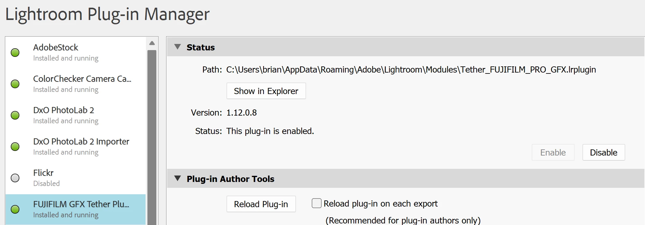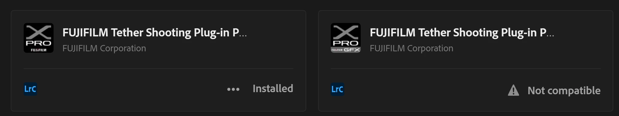 Fujifilm GFX Plugin won't install