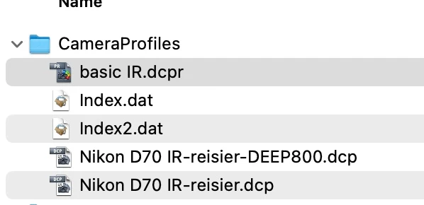 /Users/<myname./Library/Application Support/Adobe/CameraRaw/CameraProfiles/basic IR.dcp