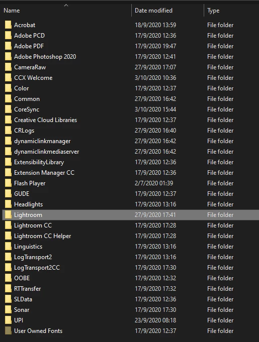 If I select "Show All other Lightroom Preset" go to: "C:\Users\XXXXX\AppData\Roaming\Adobe" selecting Lightroom Directory: