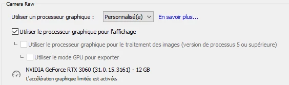 Impossible, me semble-t-il, d'activer l'accélération graphique de manière optimum : elle est limitée, et je ne peux pas cocher toutes les cases à cocher car elle sont grisées