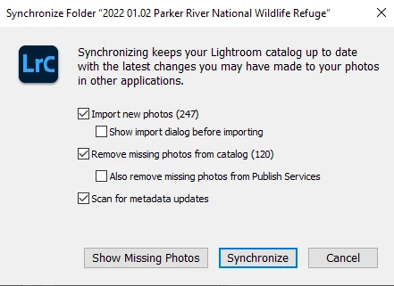 Now I would like to move to LrC 11, but have a problem with those already created folders that contain the CR3+JPGs after I have converted the catalog and am using LrC11. If I Synchronize those existing folders, LrC 11 says the JPG files are "missing" and the raw CR3 files are "new", so all the metadata is lost: