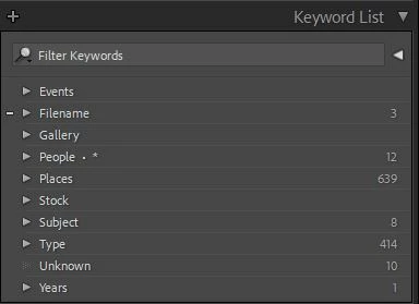 What do the numbers on the right mean? They don't seem to have any correlation to what is inside the keyword set. For example, inside of People there is no keyword named People and there are a lot more keywords in People than 12.