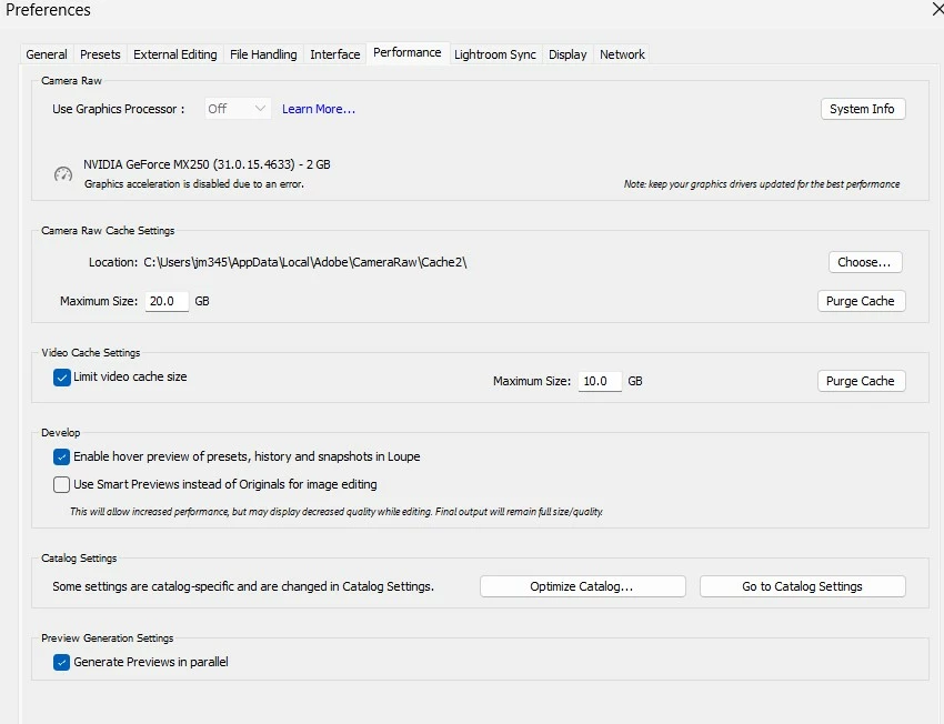 Lens Blur not working in LrC and Disables option to use Graphics Processor