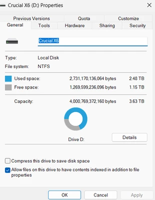 My catalog is on a SSD with 31 % Free space