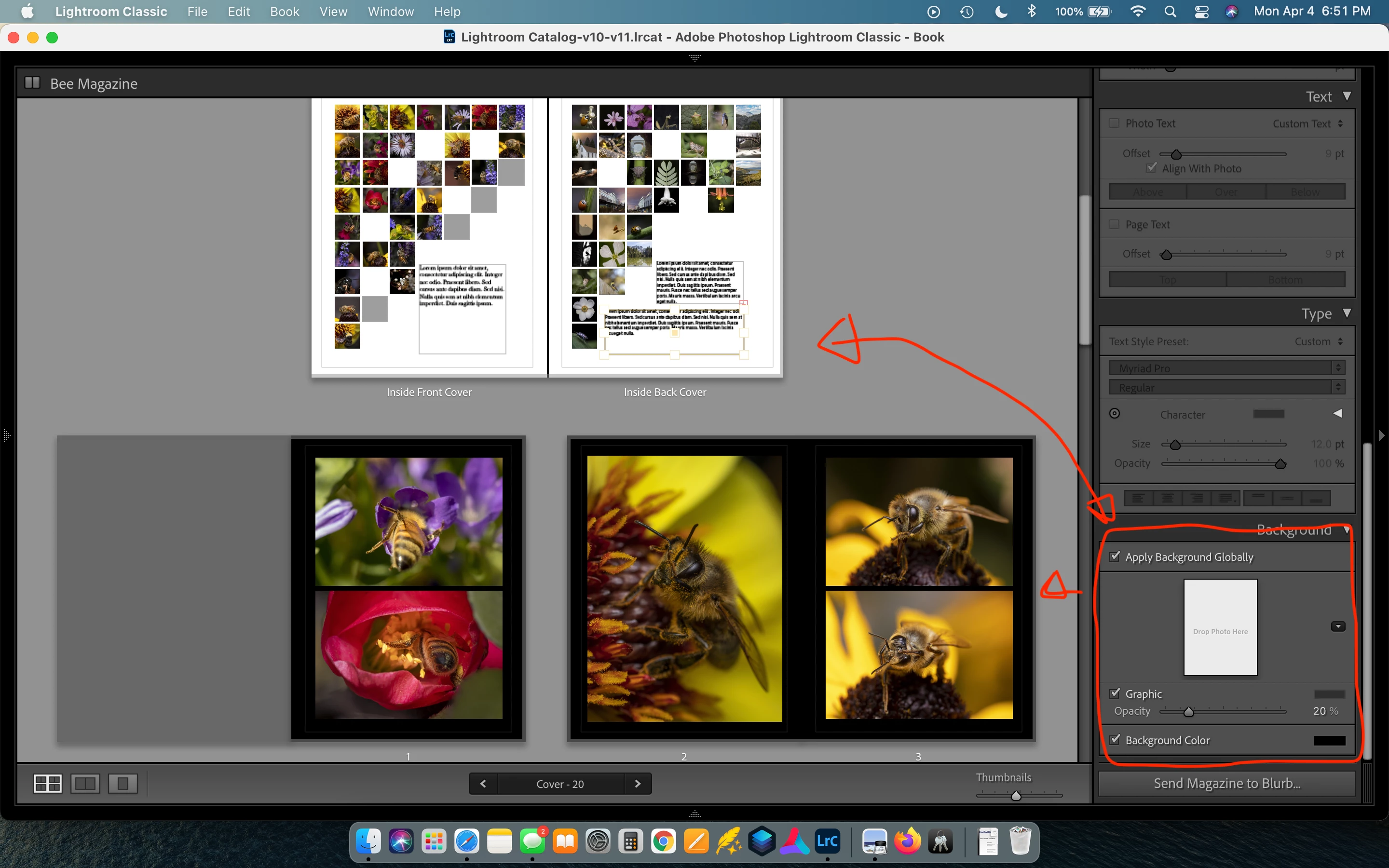 I am trying to make a magazine for a photography project and I am having an issue with background colors and the inside cover. I have the global background set to black and on the all the interior pages it shows the black background. However on the inside of the cover I cant get it to be anything other than white. I really dont want the background pages of the magazine to clash with white interior covers but I am not sure how to get it to work.